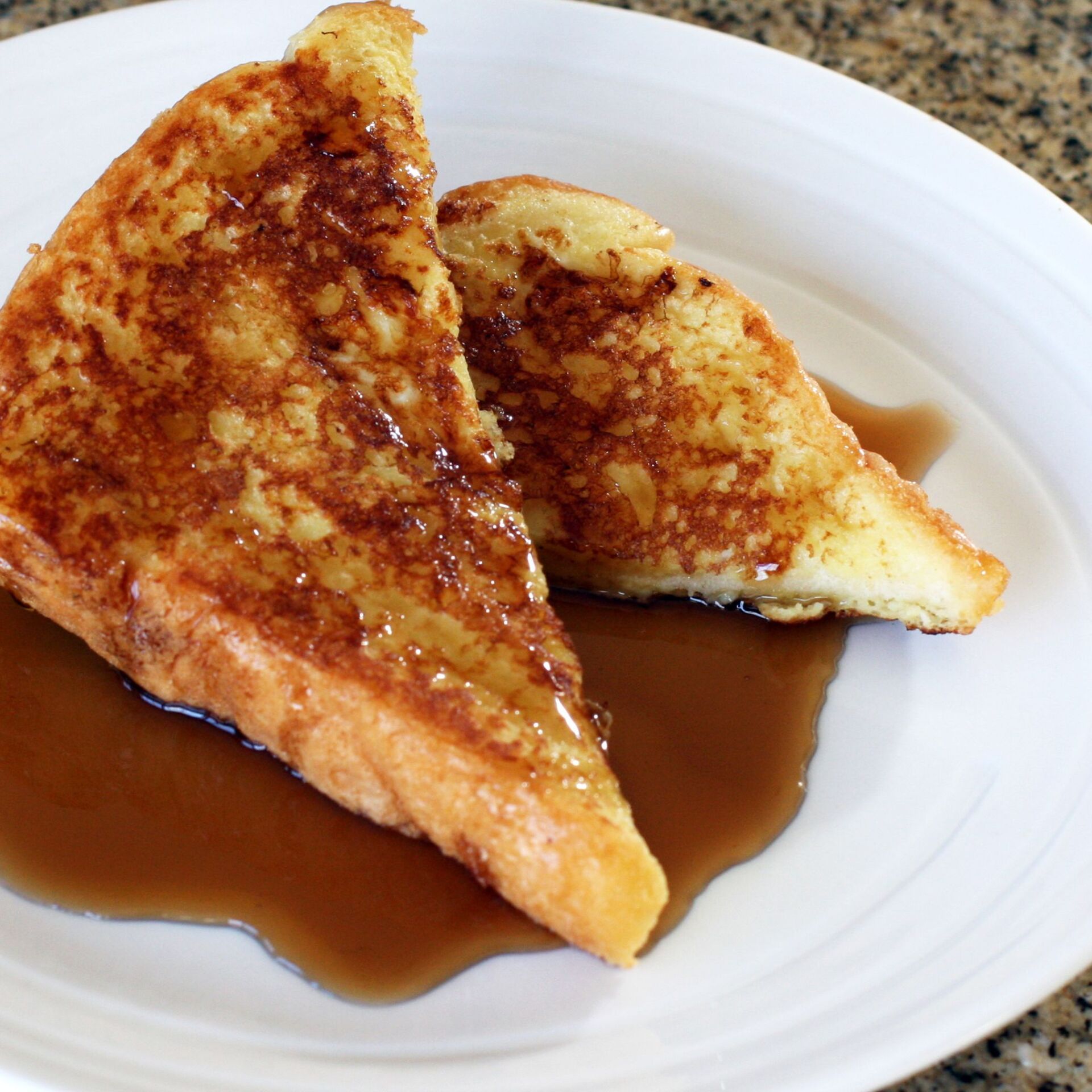 Thick cut bread that is then battered and cooked to perfection for a crisp exterior yet fluffy interior. Served with maple syrup and butter.